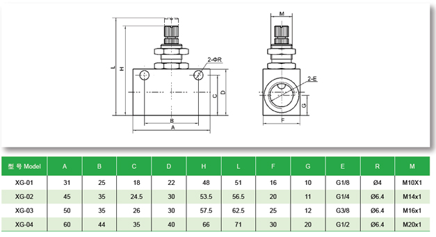 --选择型号 |- XG系列手动阀 |- XG 533N-HD系列手动阀 |- XG322N-RS 系列手拉阀 |- XG522N-HV系列手扳阀 |- XG322N-MVA 系列机械阀 |- XG322N-MVB系列机械阀 |- XG322N-MVC系列机械阀 |- XG322N-MVD系列机械阀 |- XG 系列节流阀 |- XG522N-HDV 系列手拉阀 |- 4HV 系列手转阀 |- QTYH 系列高压调压阀
